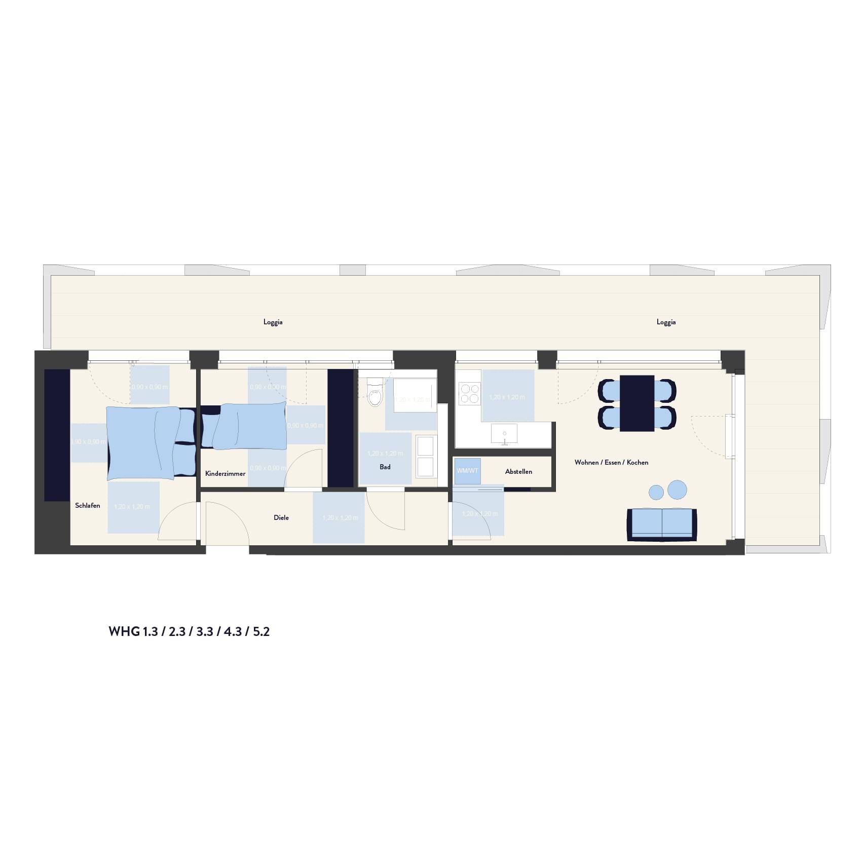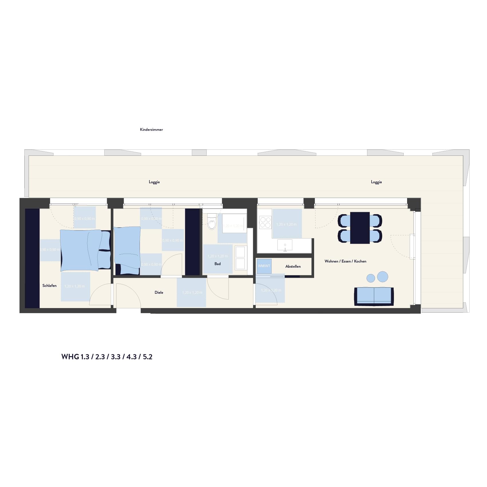 Wohnfläche mit Balkonen zu 50% (nach WoFlV)