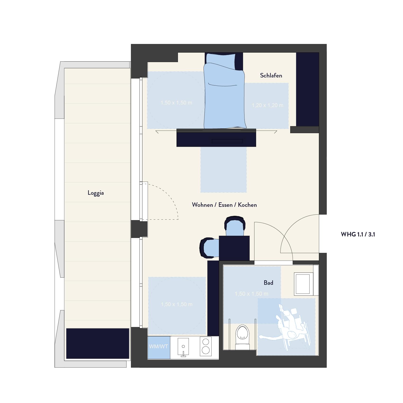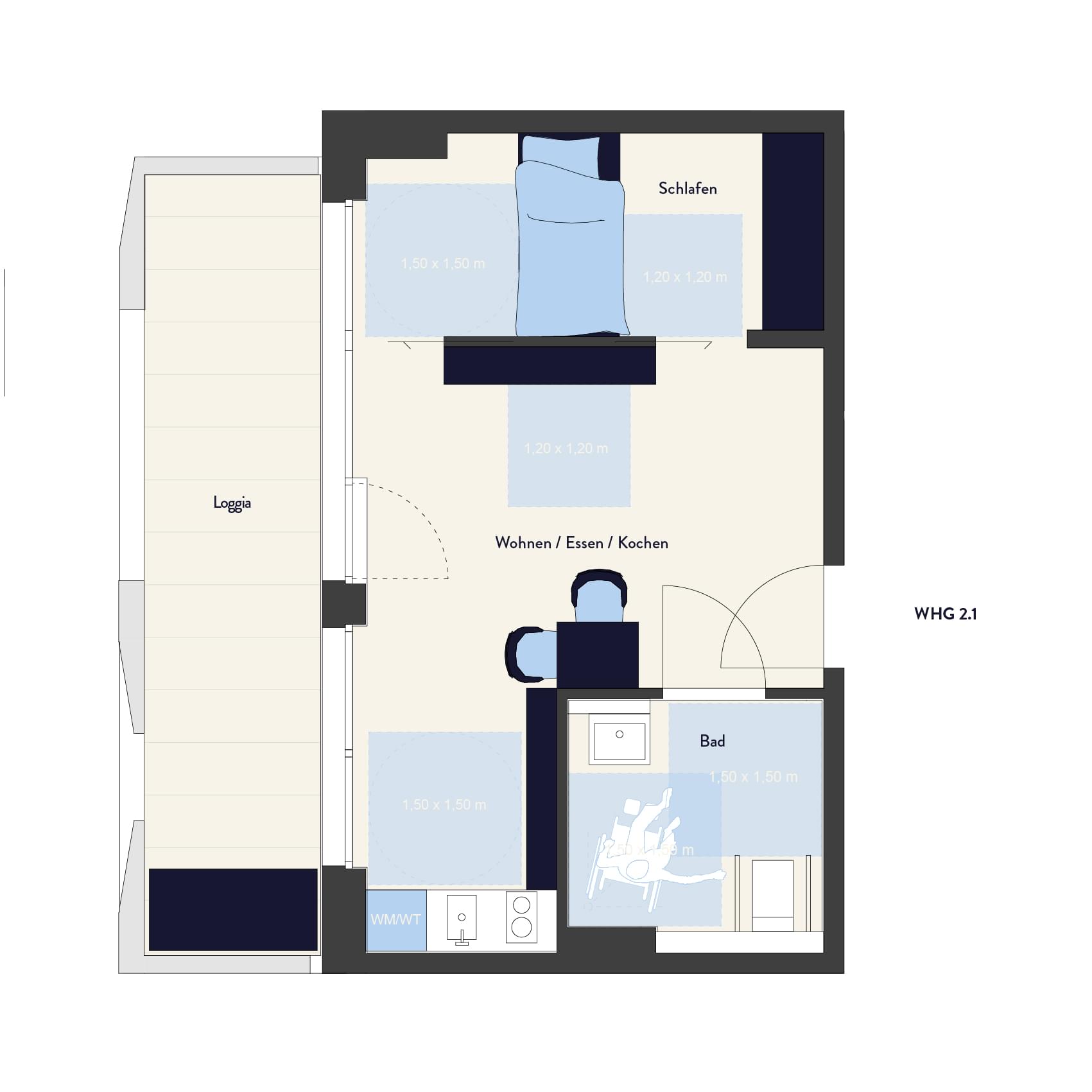Wohnfläche mit Balkonen zu 50% (nach WoFlV)