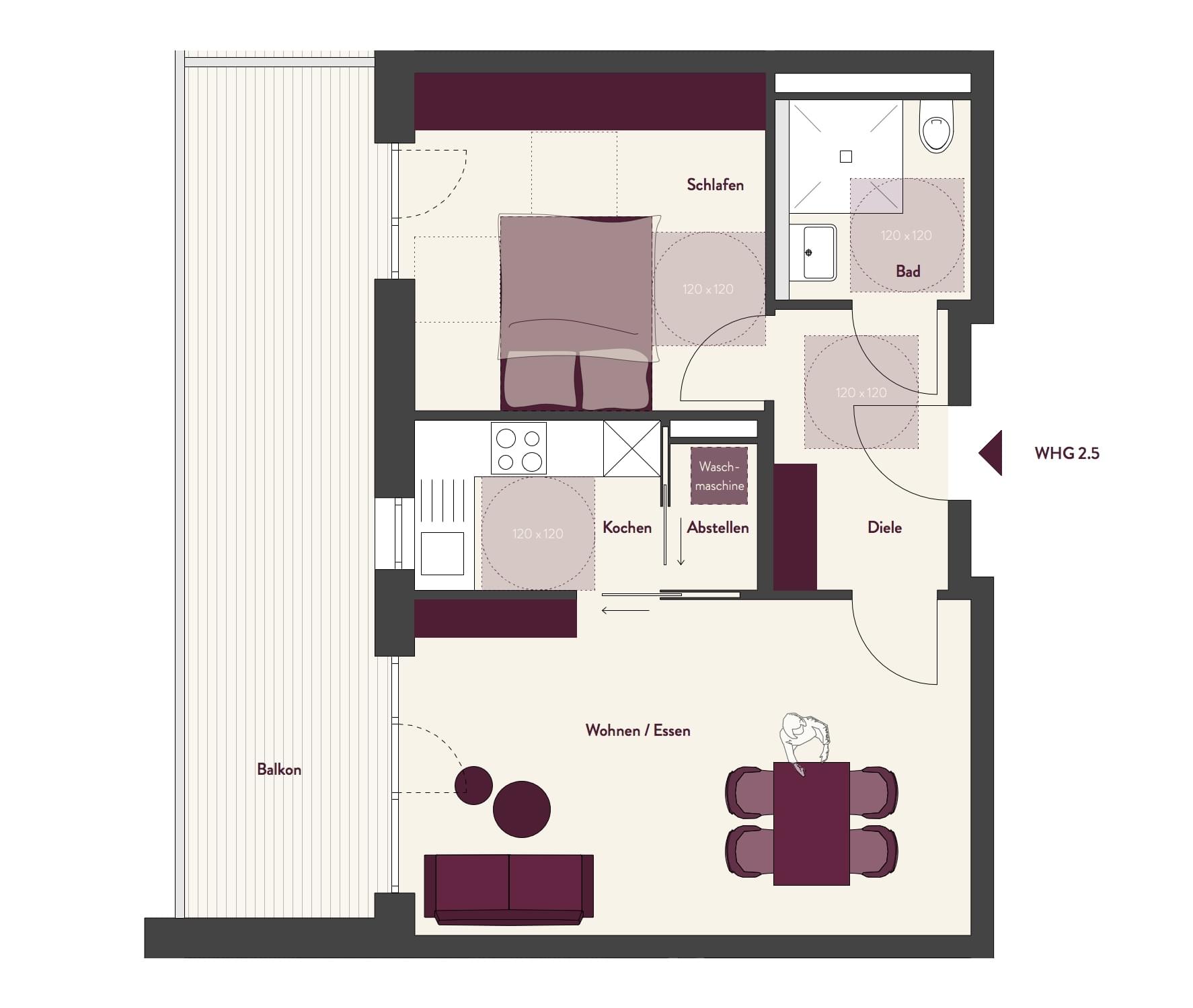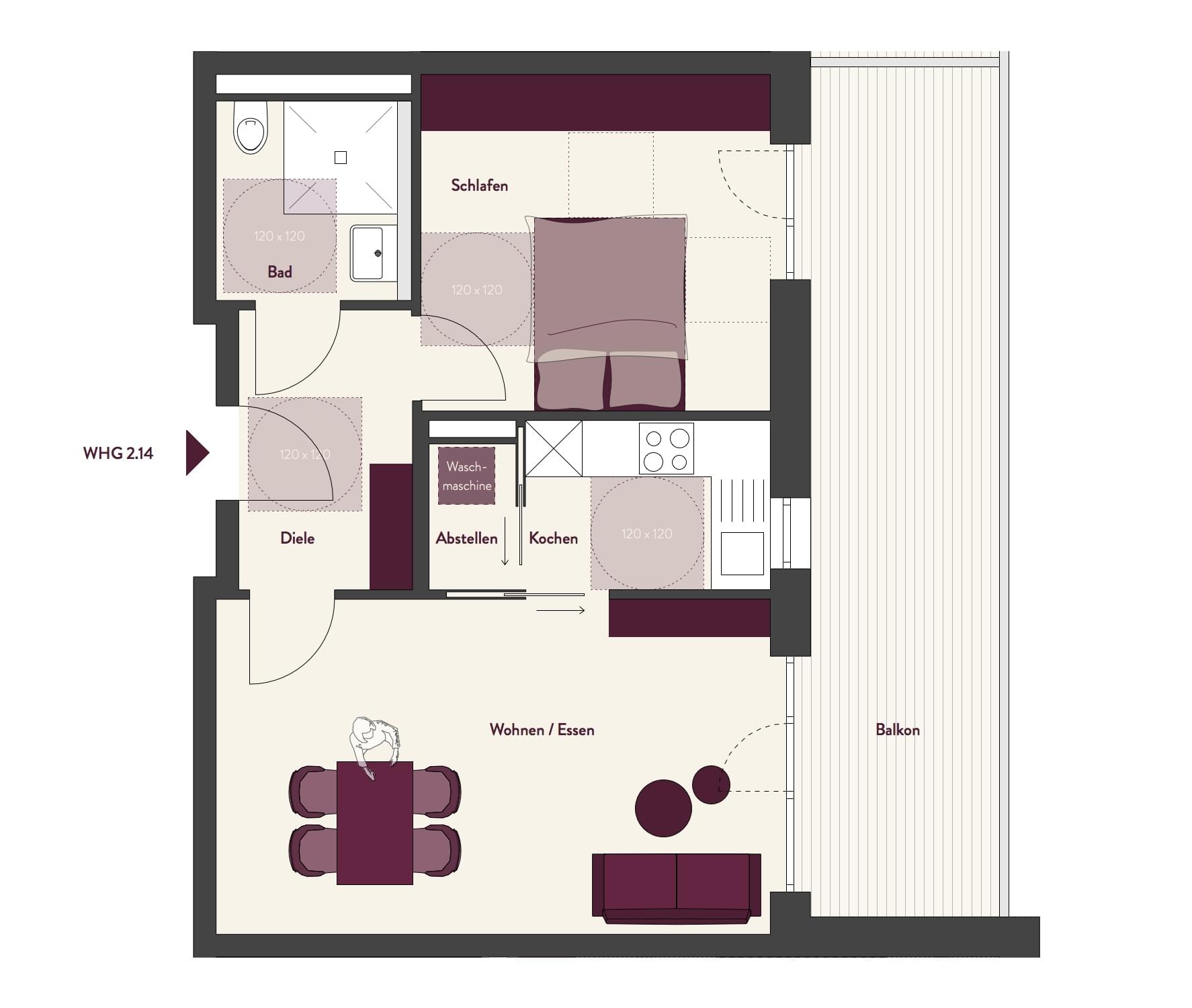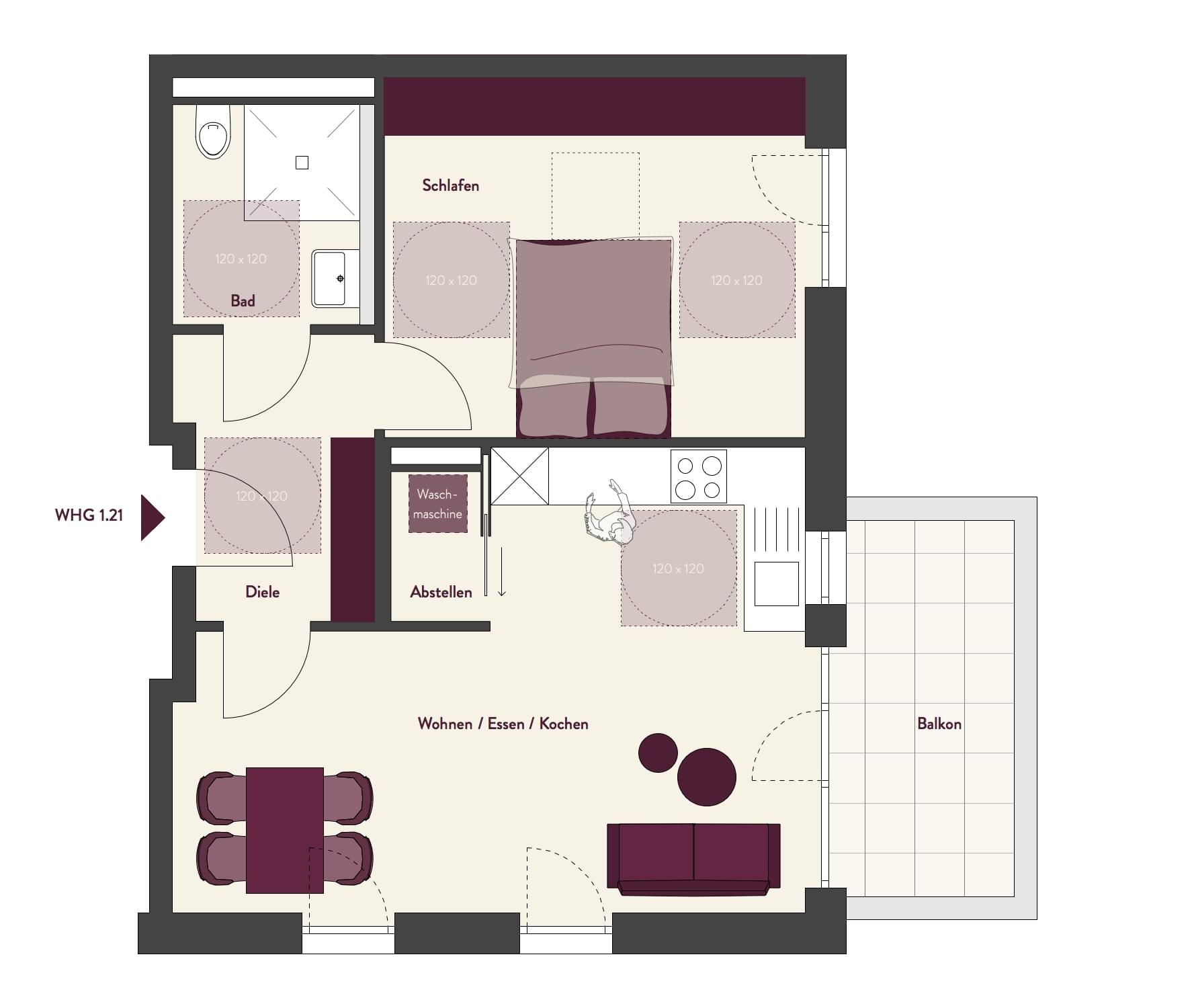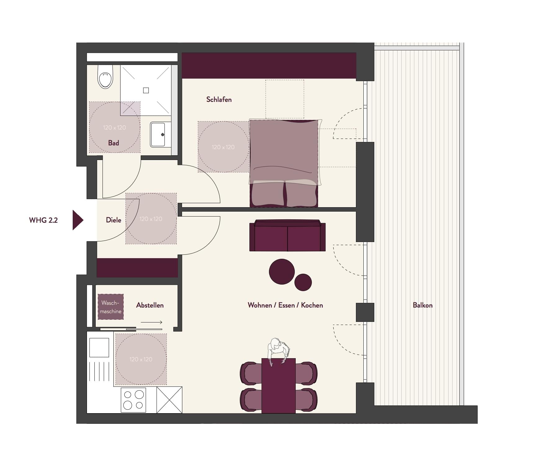 Wohnfläche mit Balkonen zu 50% (nach WoFlV)