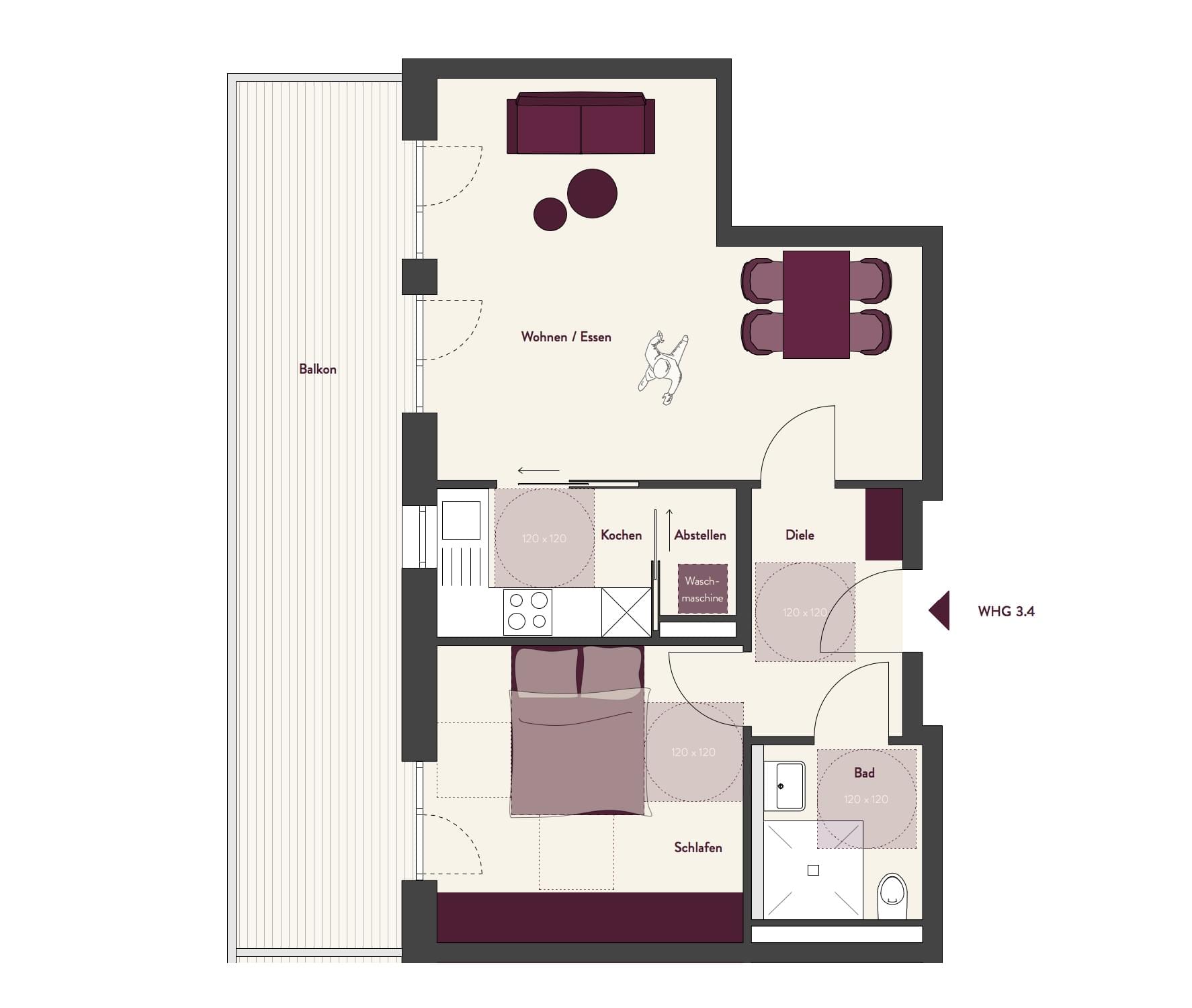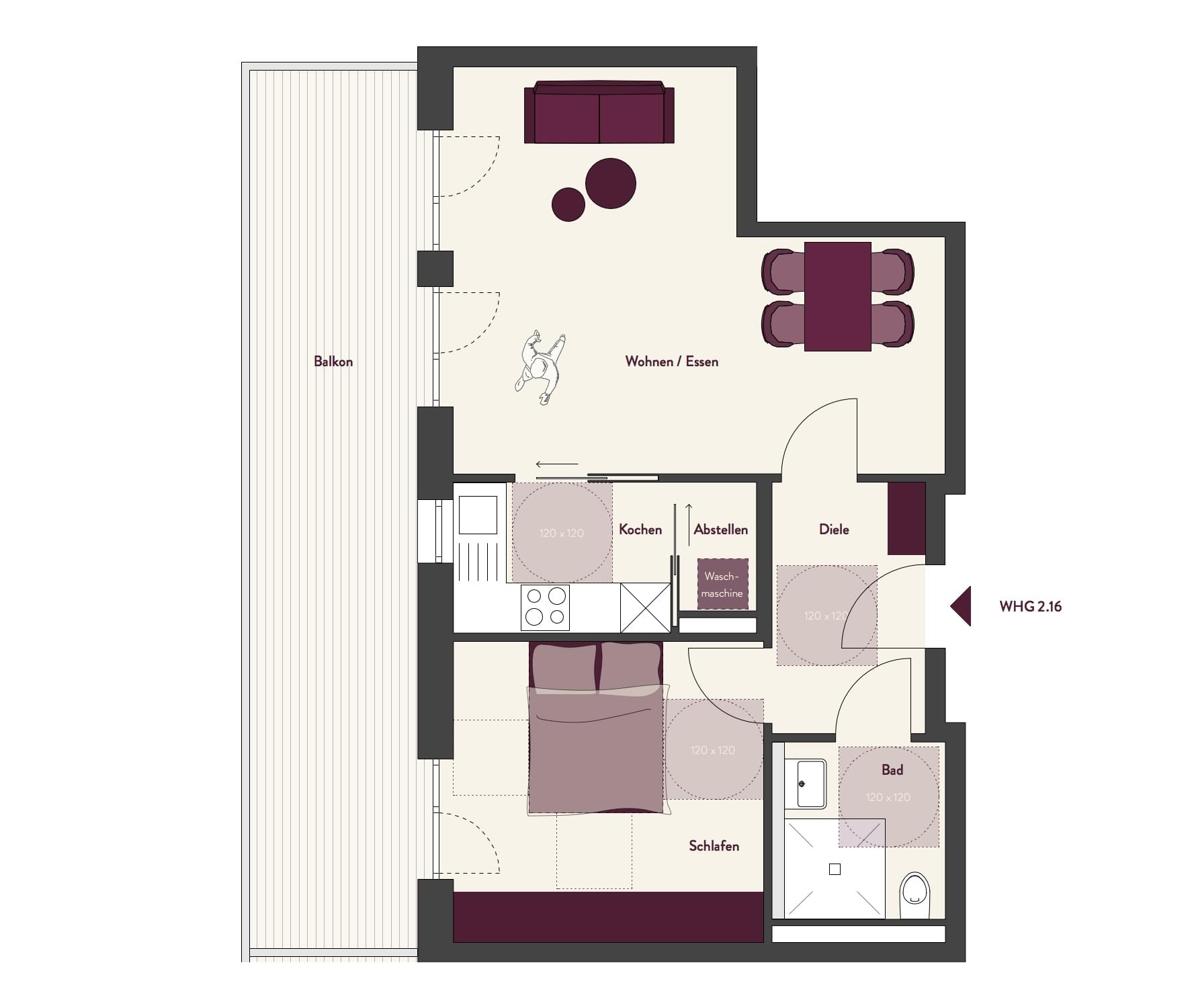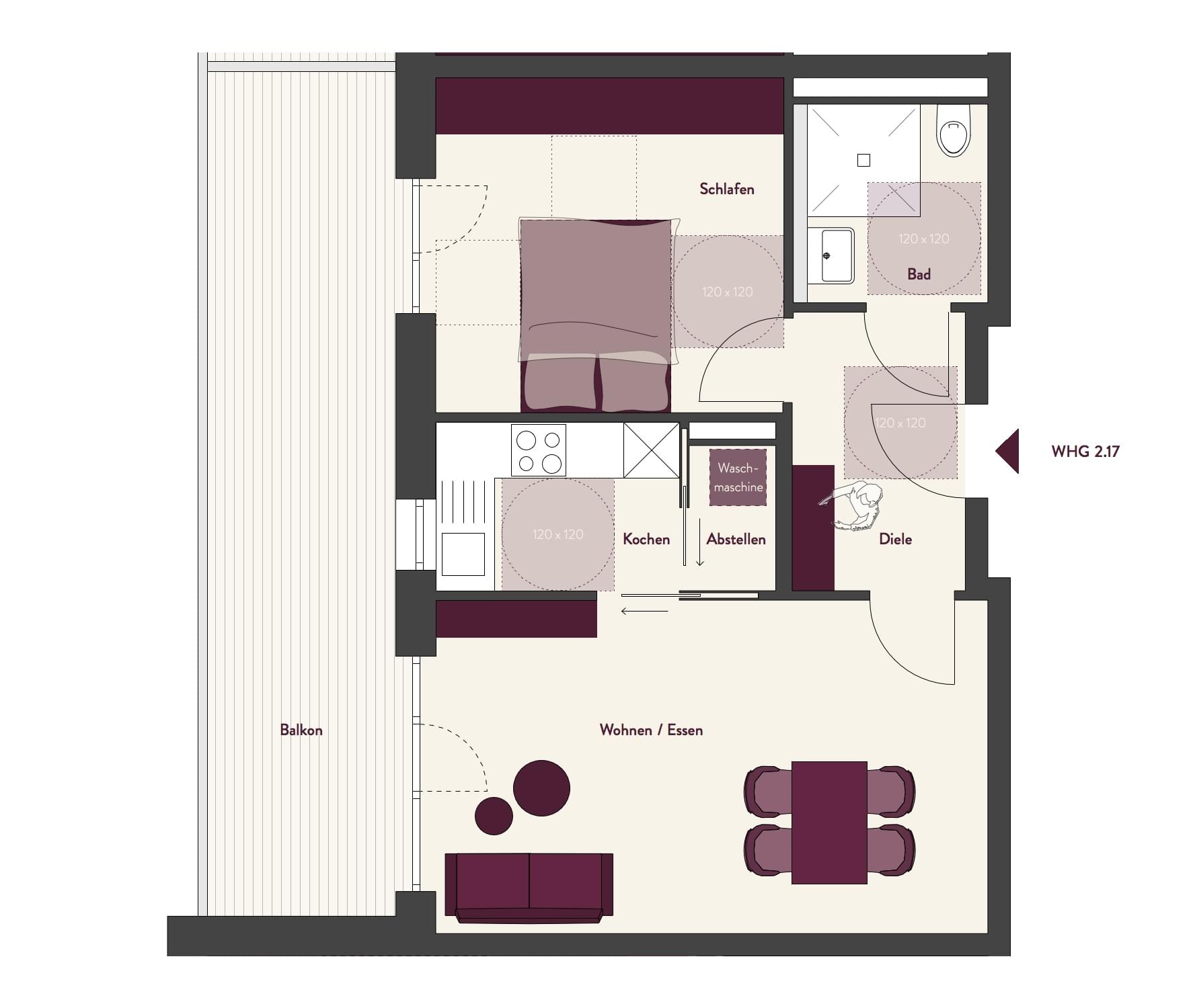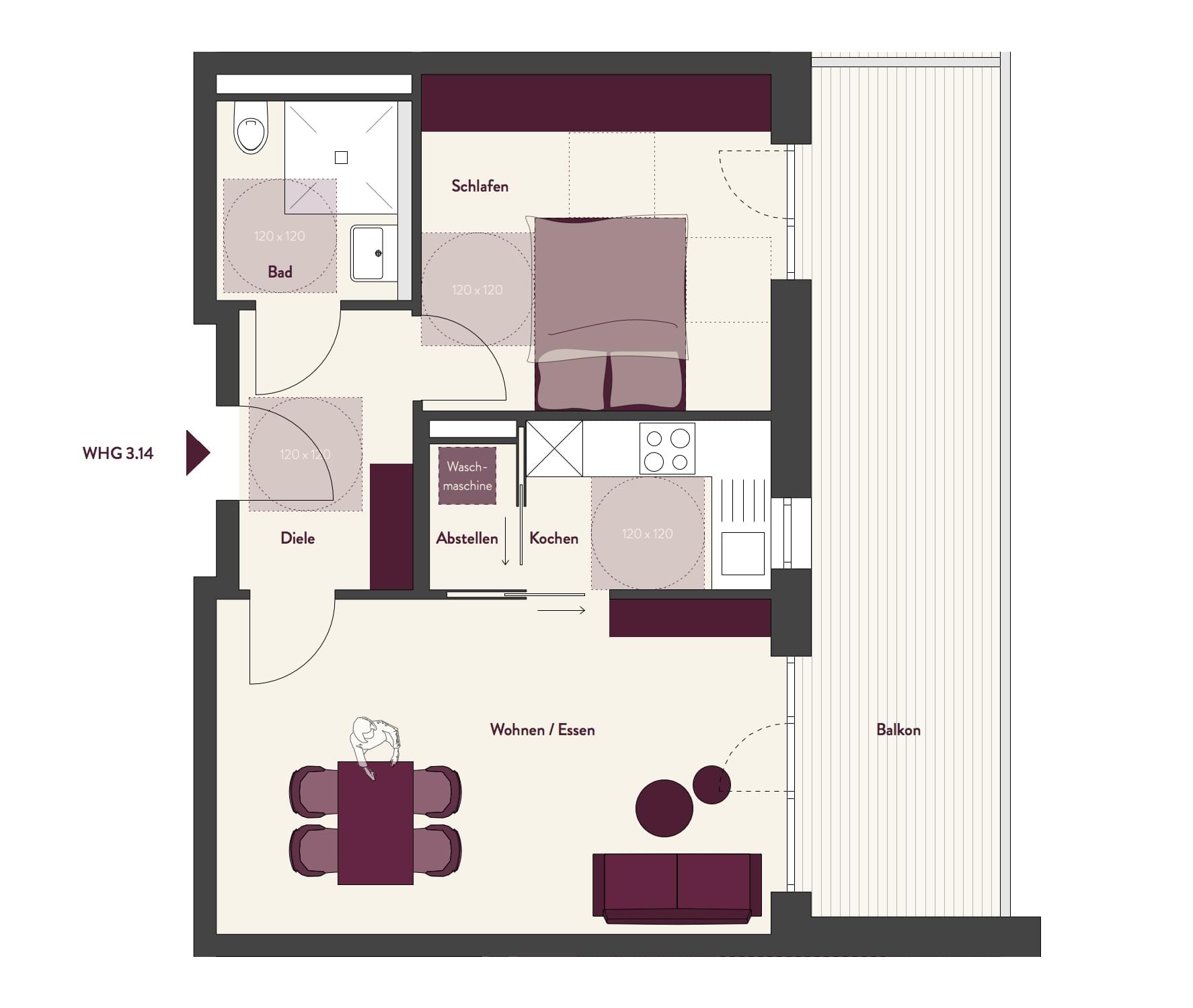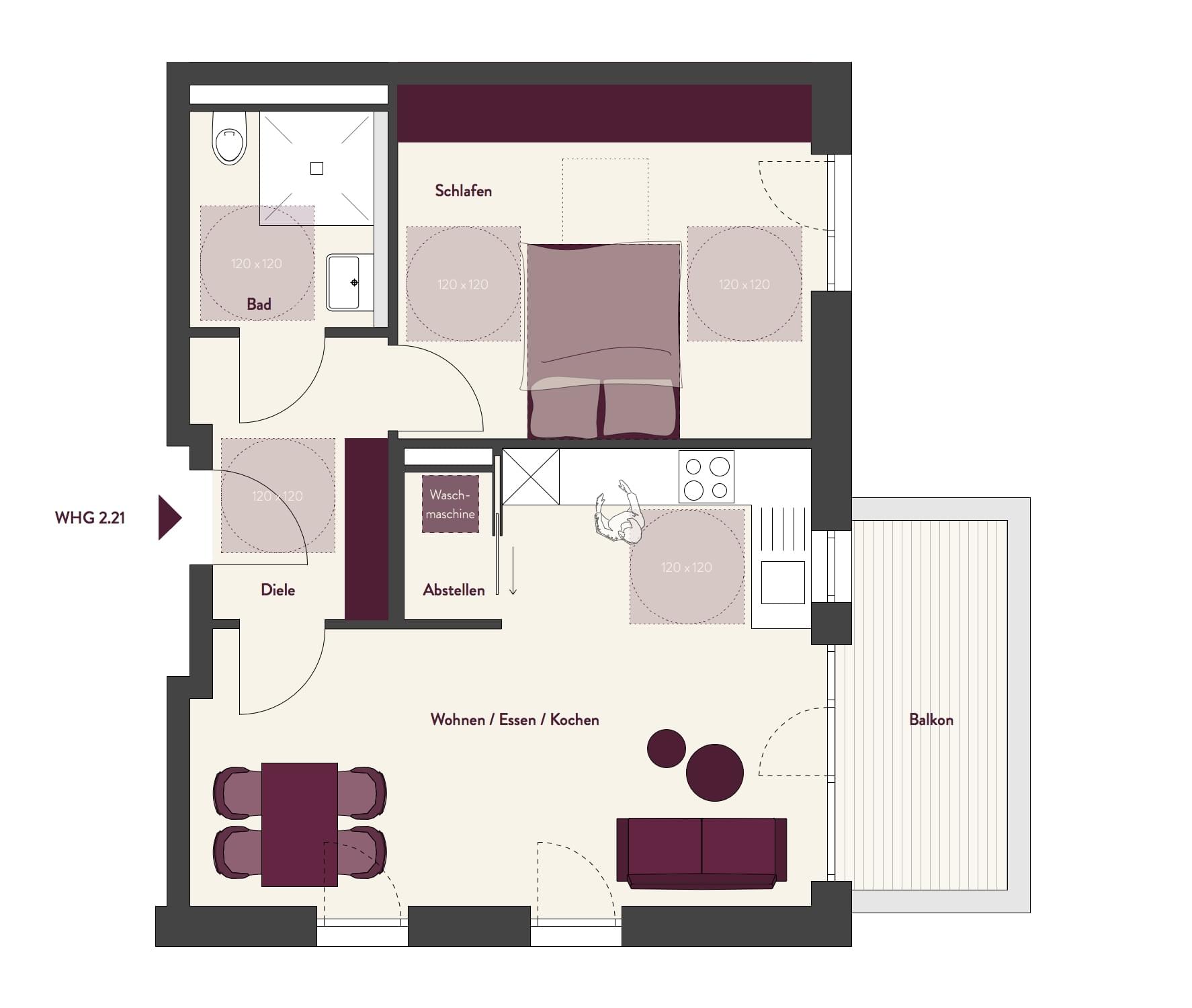 Wohnfläche mit Balkonen zu 50% (nach WoFlV)