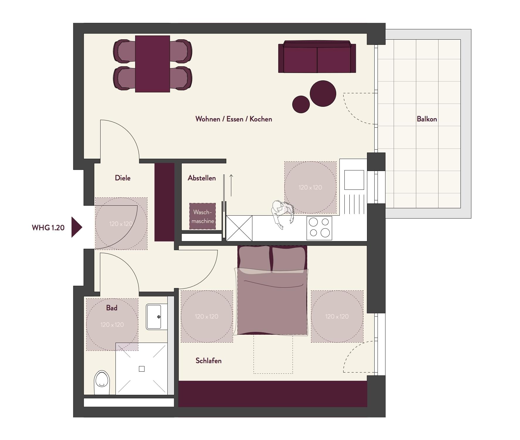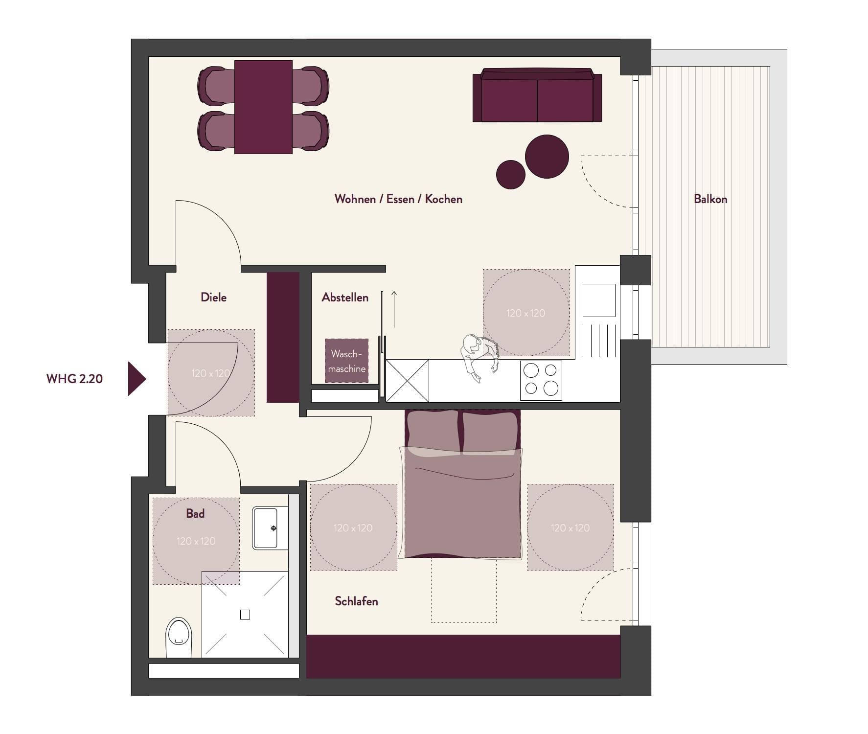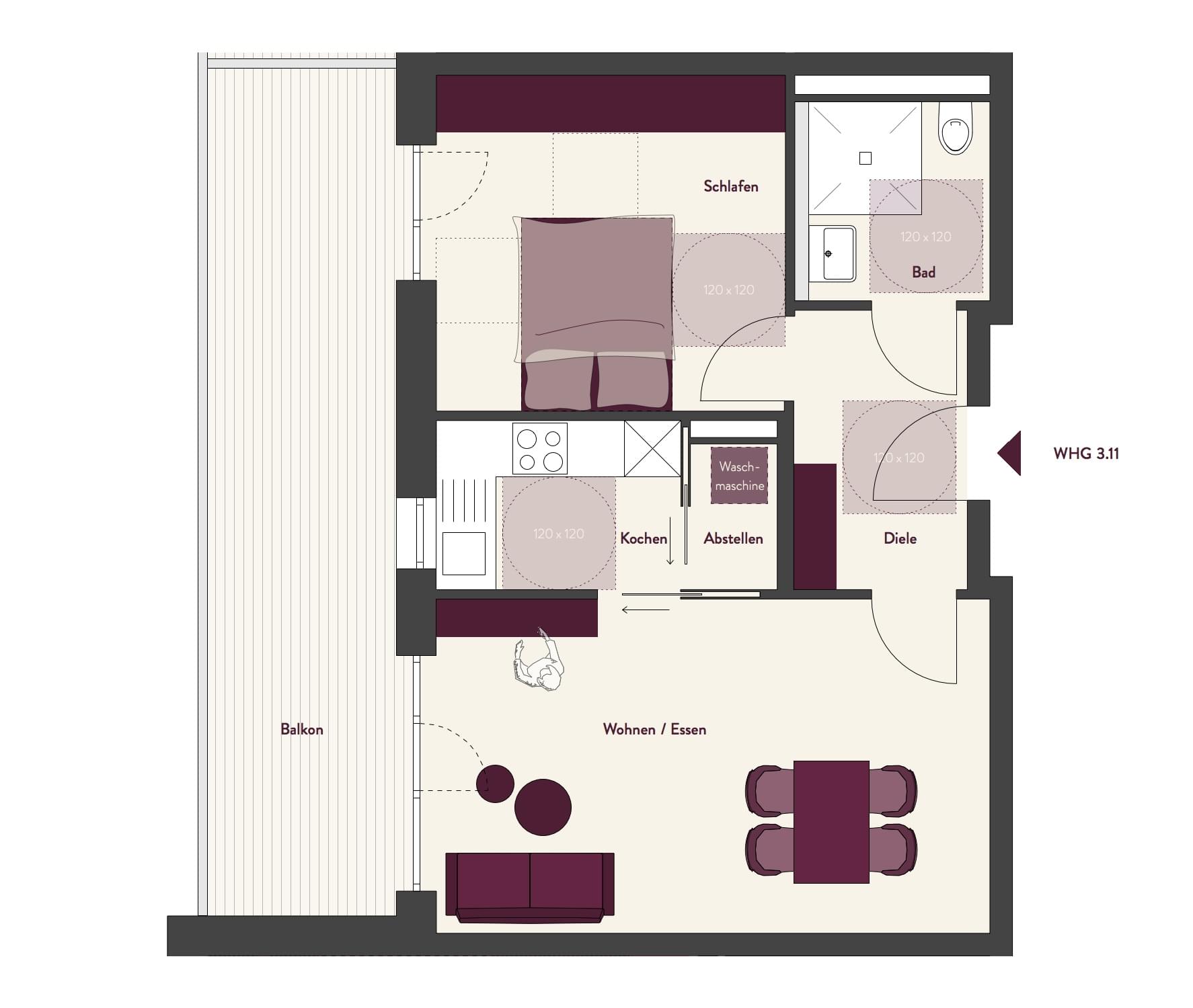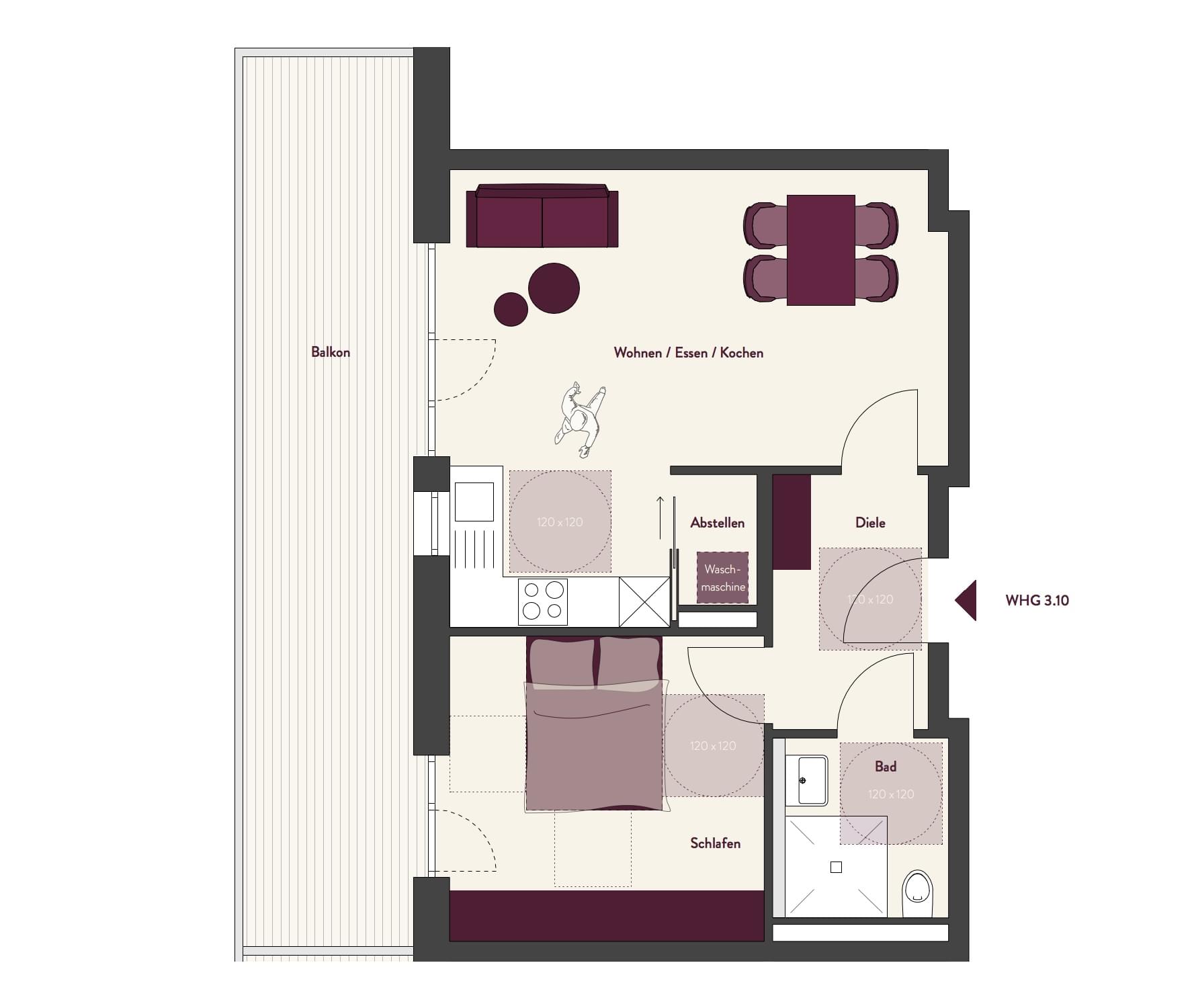 Wohnfläche mit Balkonen zu 50% (nach WoFlV)
