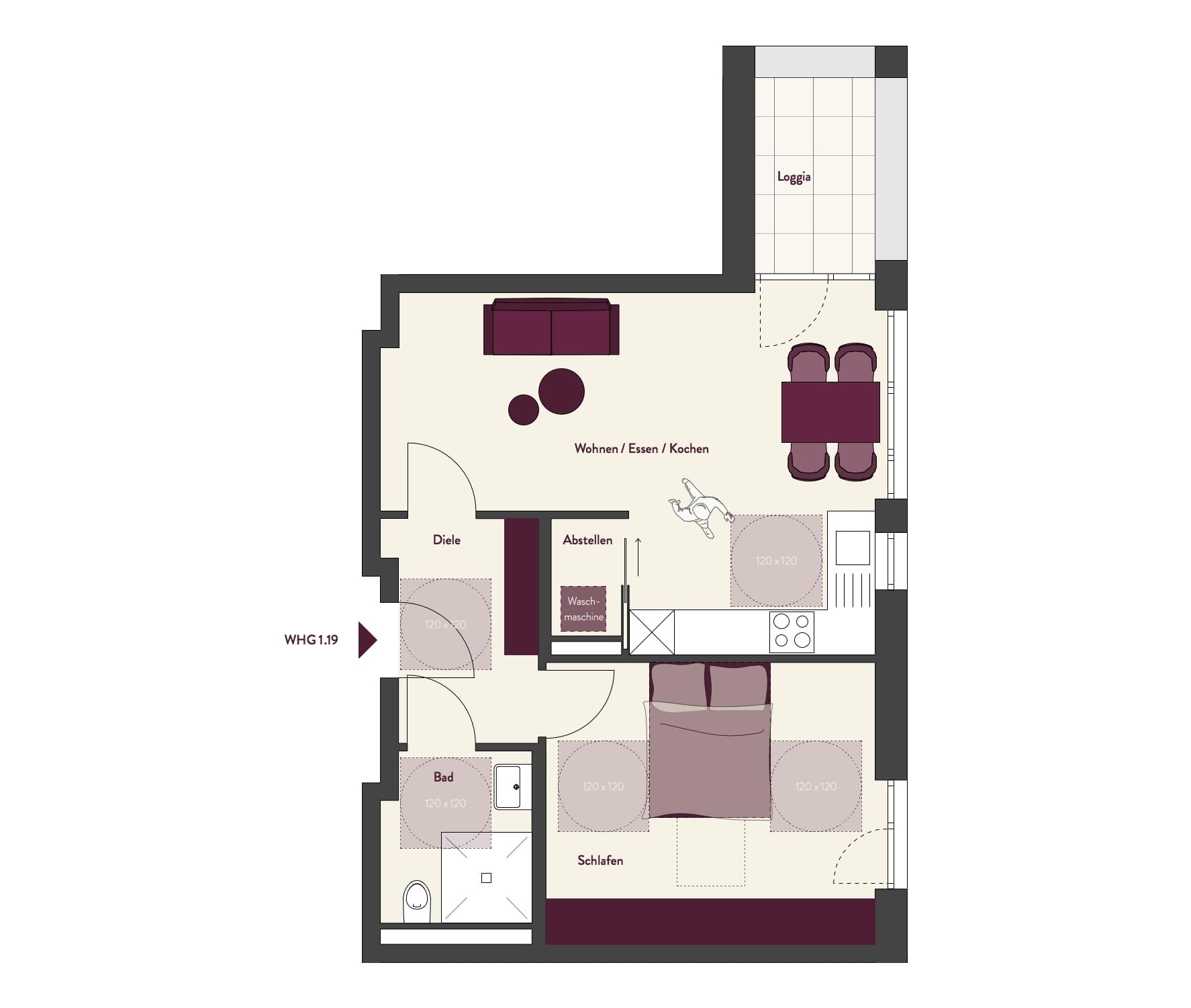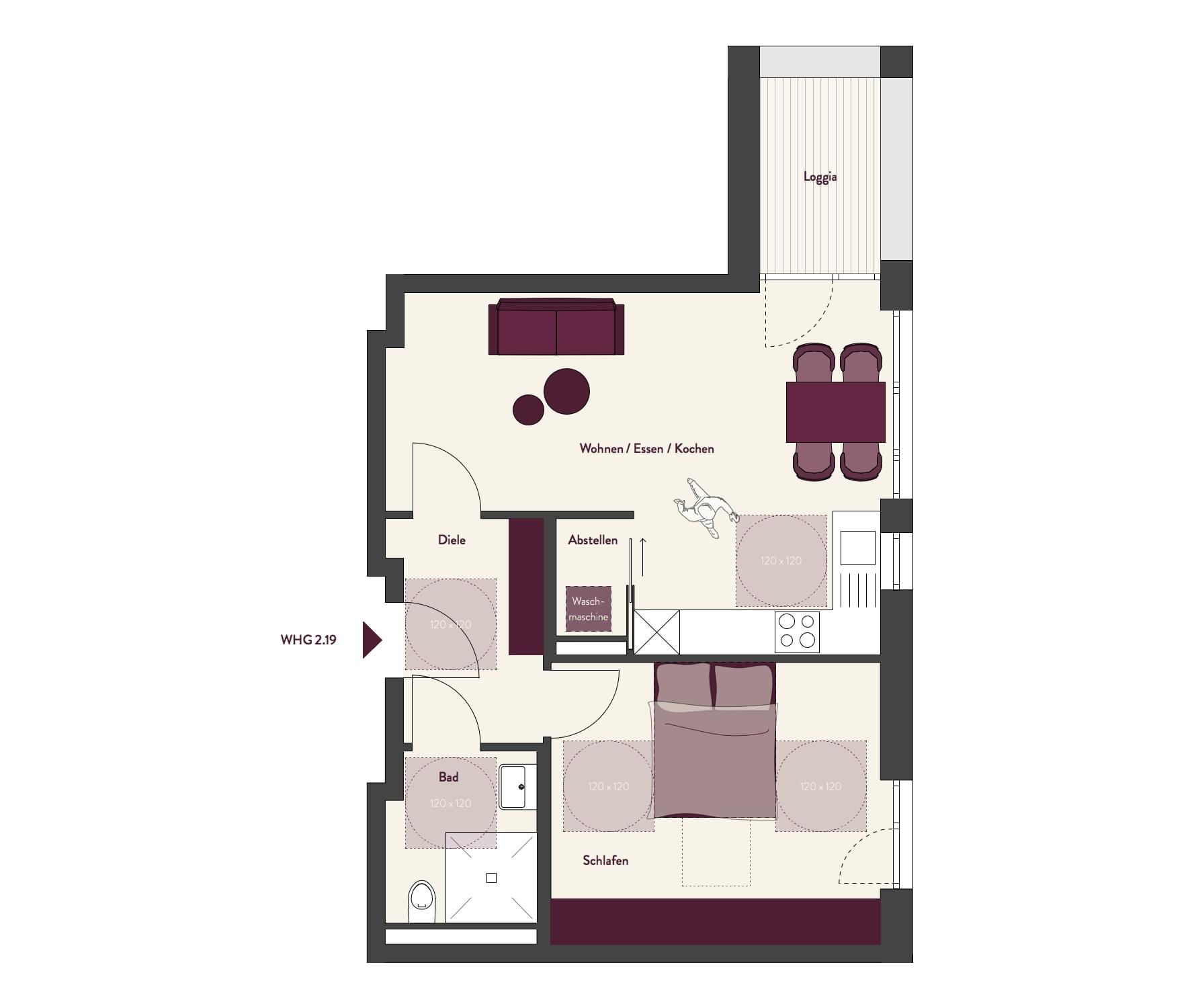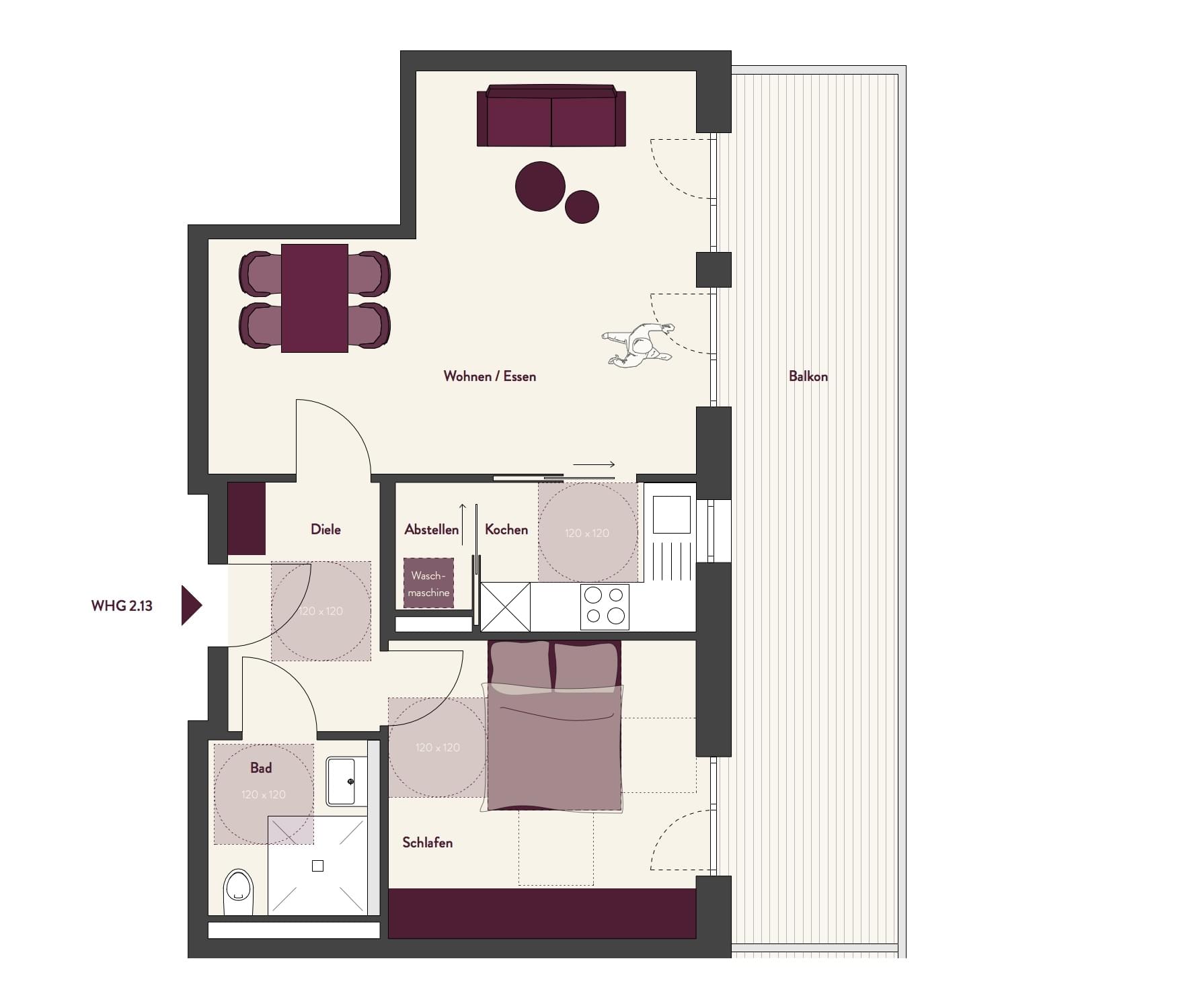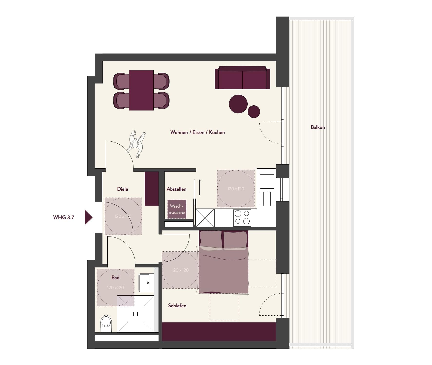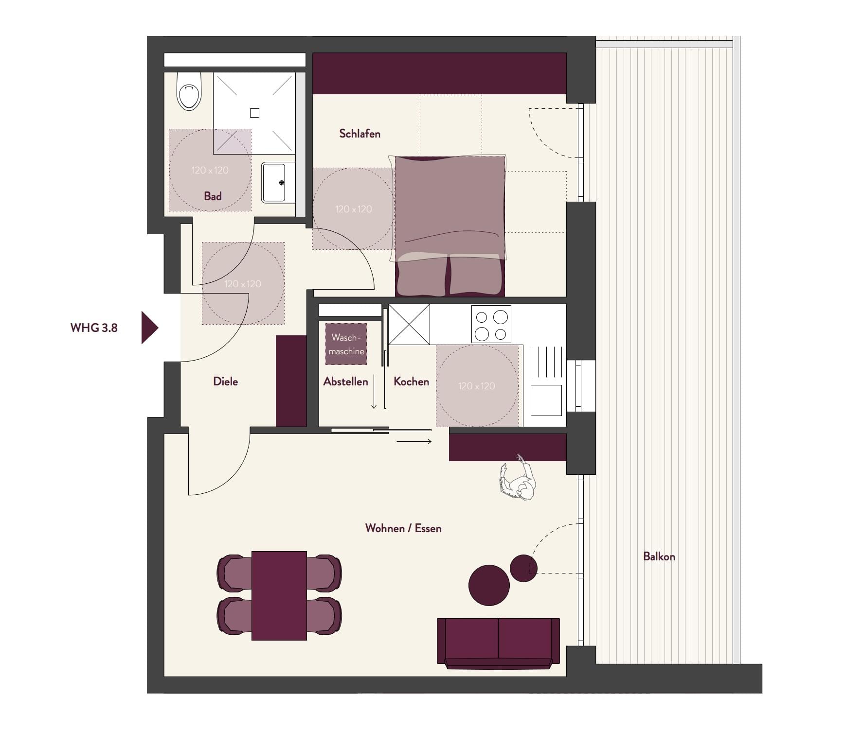 Wohnfläche mit Balkonen zu 50% (nach WoFlV)