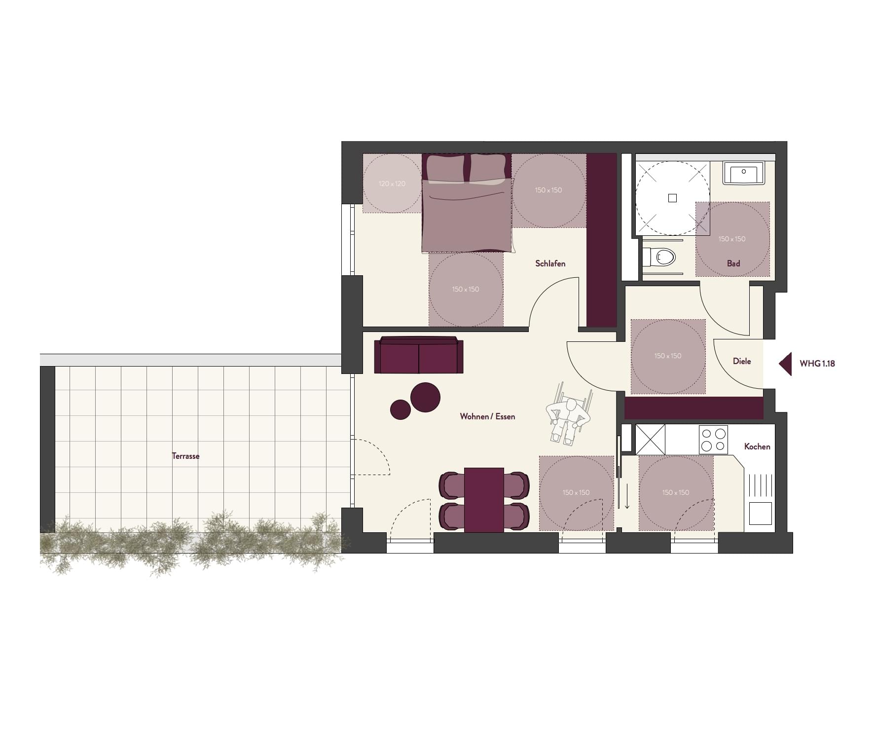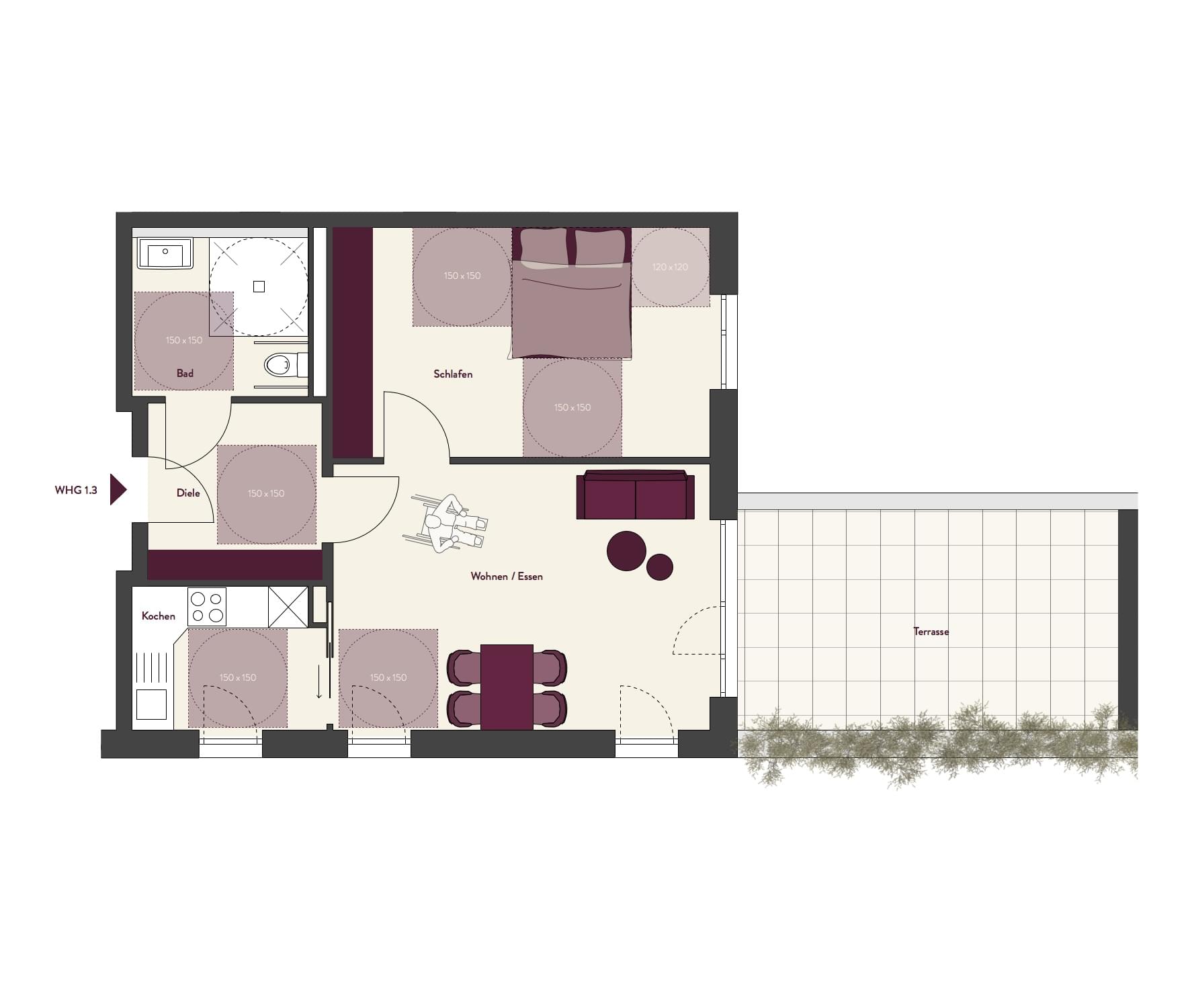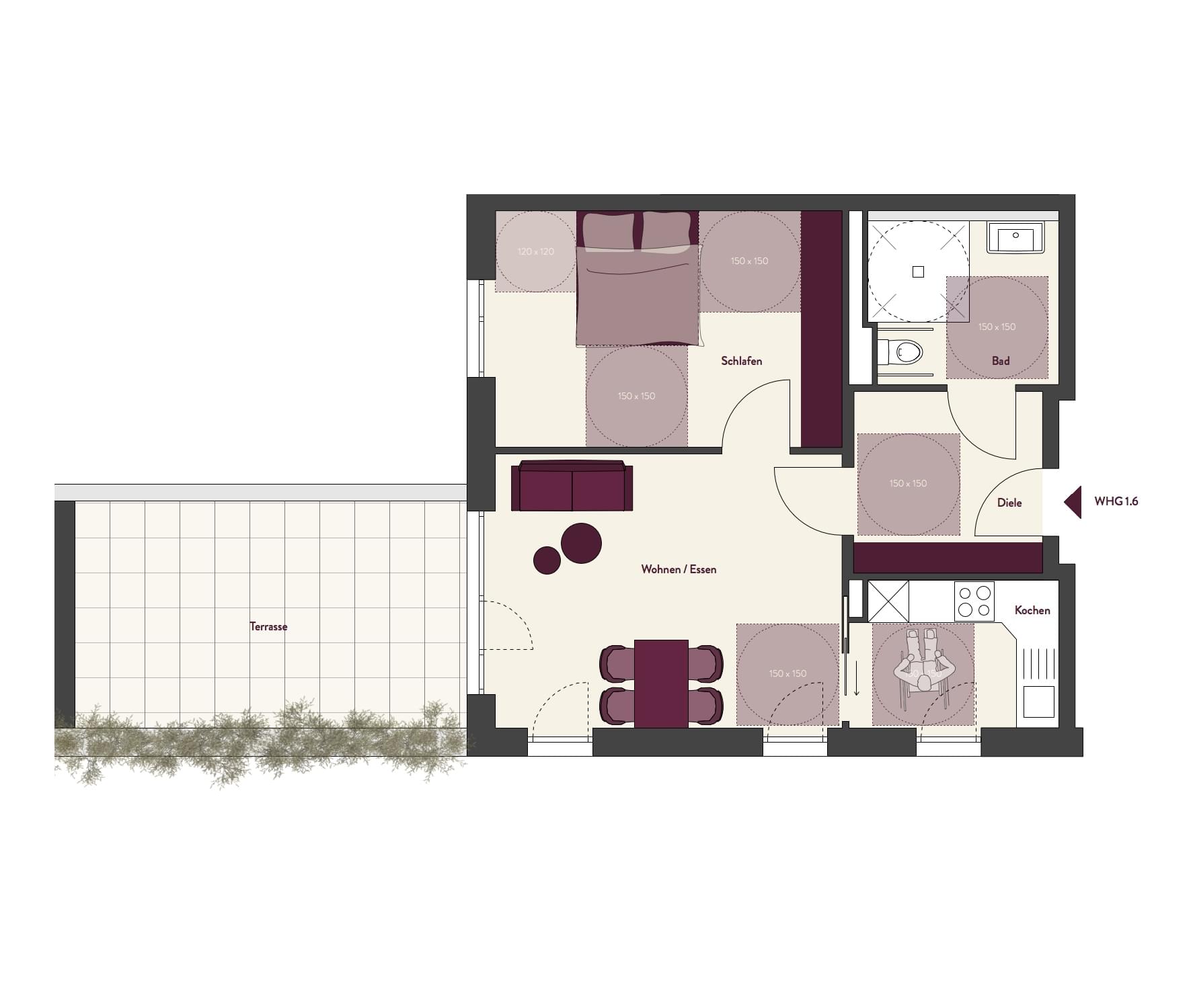 Wohnfläche mit Balkonen zu 50% (nach WoFlV)