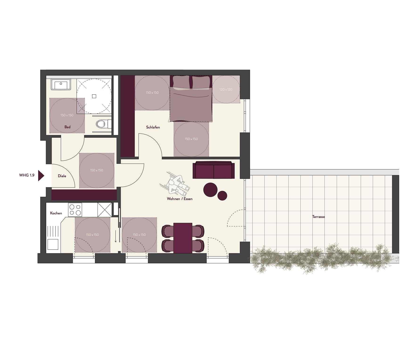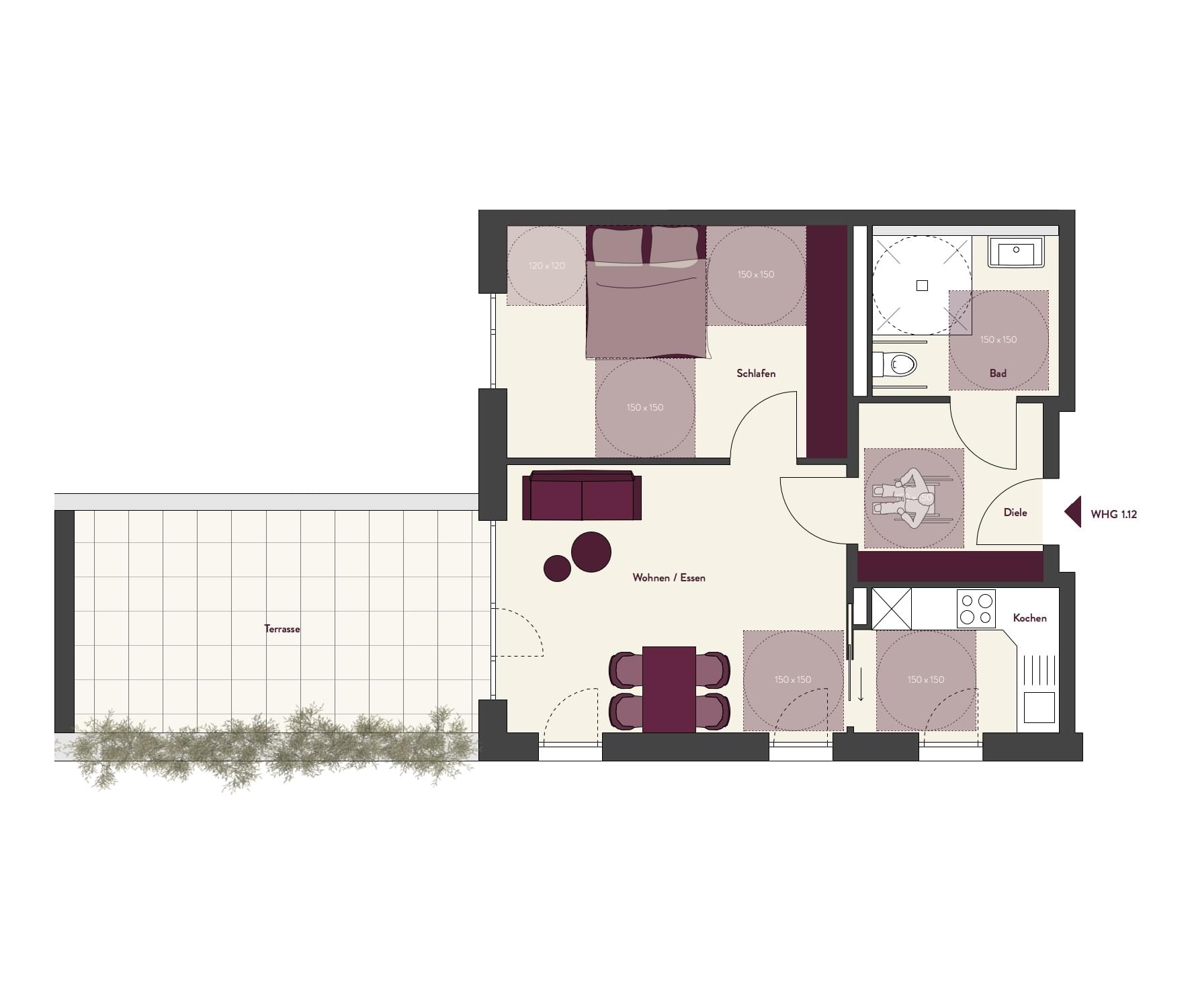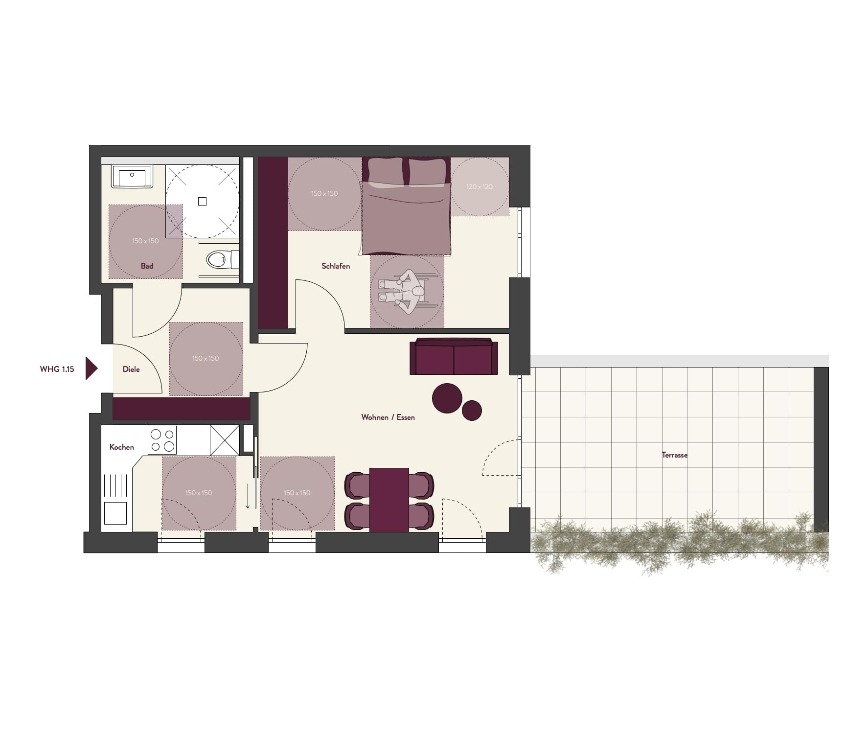 Wohnfläche mit Balkonen zu 50% (nach WoFlV)